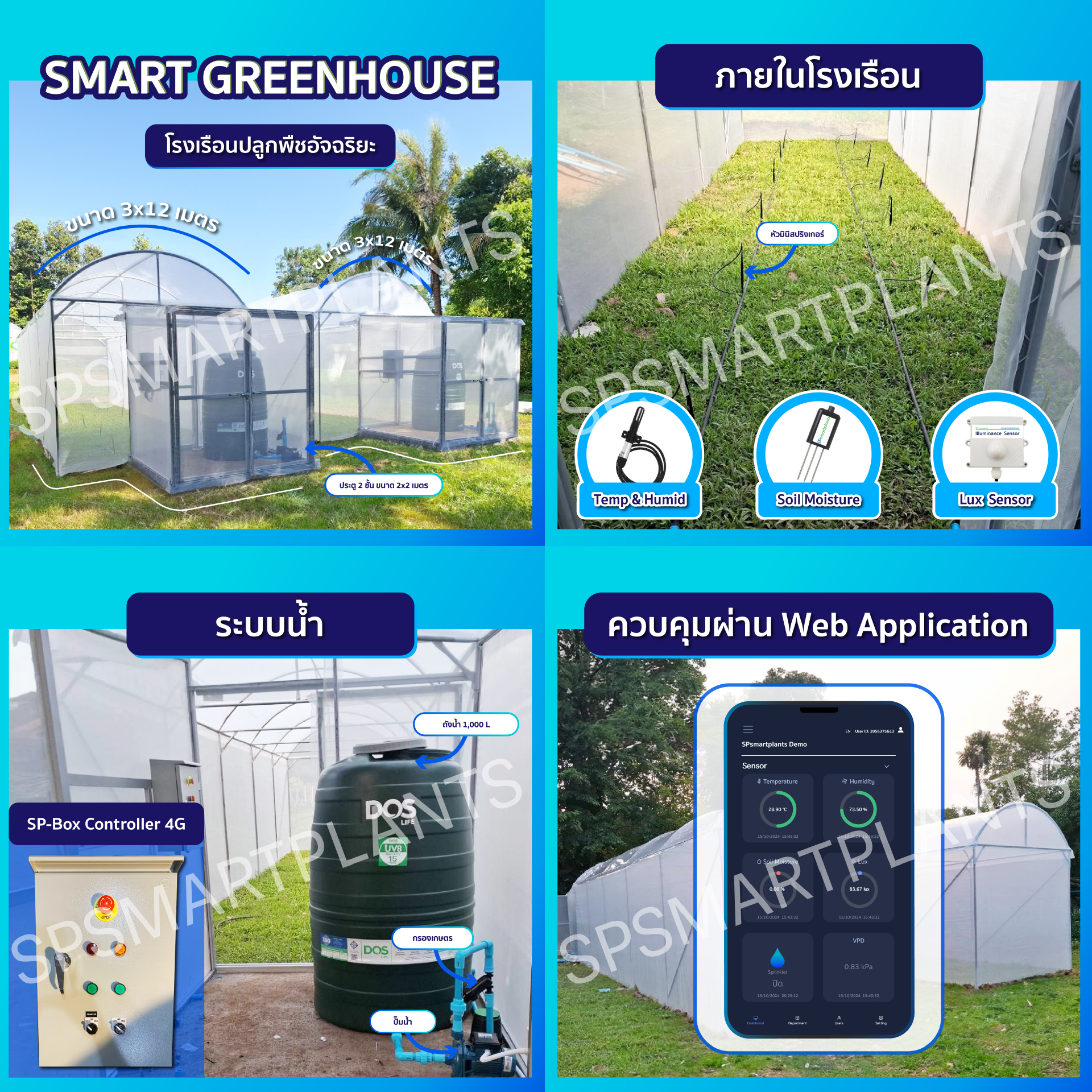 โรงเรือนจัดการการปลูกพืชด้วยอุปกรณ์ควบคุมระบบอัจฉริยะ ขนาด 6x18 เมตร พร้อมระบบ Solarcell (จ.เพชรบุรี)